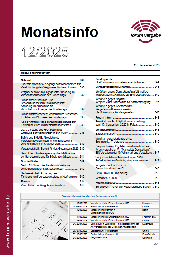Das Niedersächsische Landesvergabegesetz vom 2.9.2002 hatten wir bereits in der letzten Sonderinfo kurz vorgestellt. Das Regelwerk besteht im Kern aus der Verpflichtung zur Tariftreue bei öffentlichen Bau- und ÖPNV-Vergaben für… Niedersachsen: Tariftreue und mehr weiterlesen